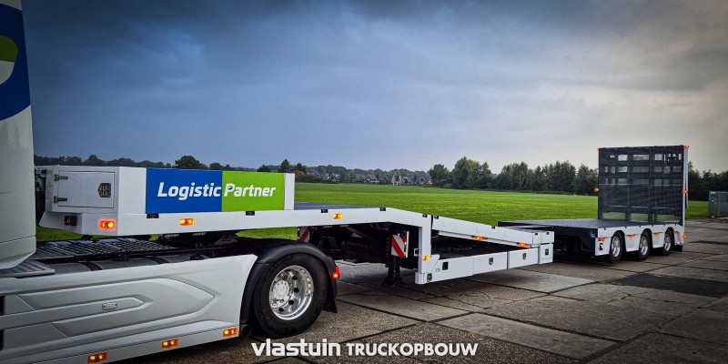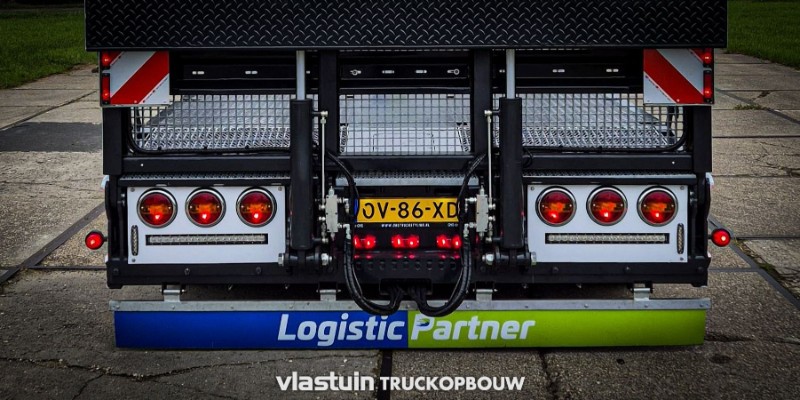 Aan Logistic Partner hebben wij deze nieuwe VTR trailer geleverd. Deze is onder andere uitgerust met 2 hydraulisch gestuurde assen, een liftbare as, diverse opbergmogelijkheden, een hydraulisch hefbed en hydraulische oprijkleppen. Daarnaast is deze trailer gepersonaliseerd met onder andere dubbelbranders als markeringslampen, 15 werklampen per kant en andere achterlichten met werkbalken eronder.