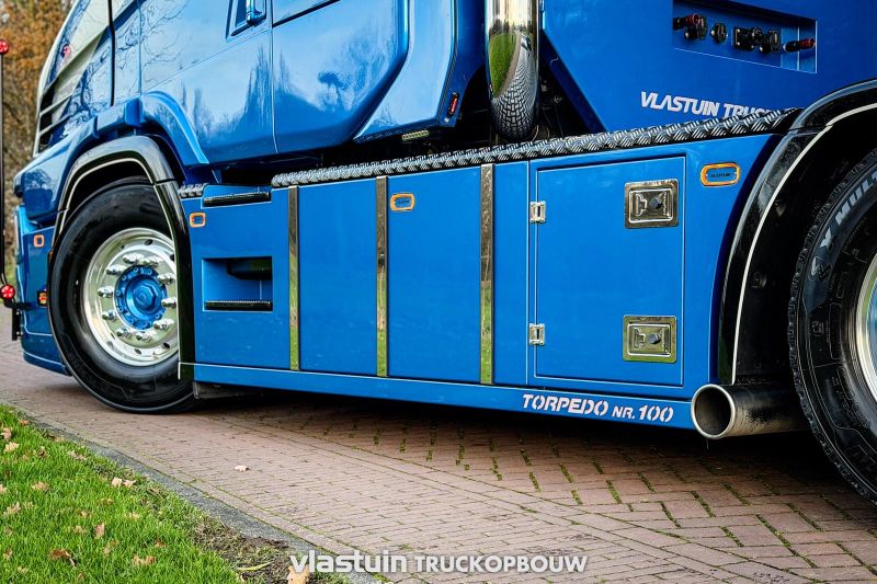 De afgelopen tijd zijn we met ons team en diverse andere gewaardeerde partijen druk geweest met onze 100ste Scania Torpedo Next Gen. Honderd is een mooie mijlpaal om even bij stil te staan en te vieren met een dikke truck. Het betreft hier een 650ST 6×2 met een CR20N cabine. Zowel het exterieur als het interieur van deze Scania is volledig aangepakt. We kunnen hier nog vele woorden aan vuil maken, maar de foto’s zeggen meer dan 1000 woorden! Dank aan iedereen die heeft meegewerkt om tot dit prachtige eindresultaat te komen, wij vinden hem geslaagd!